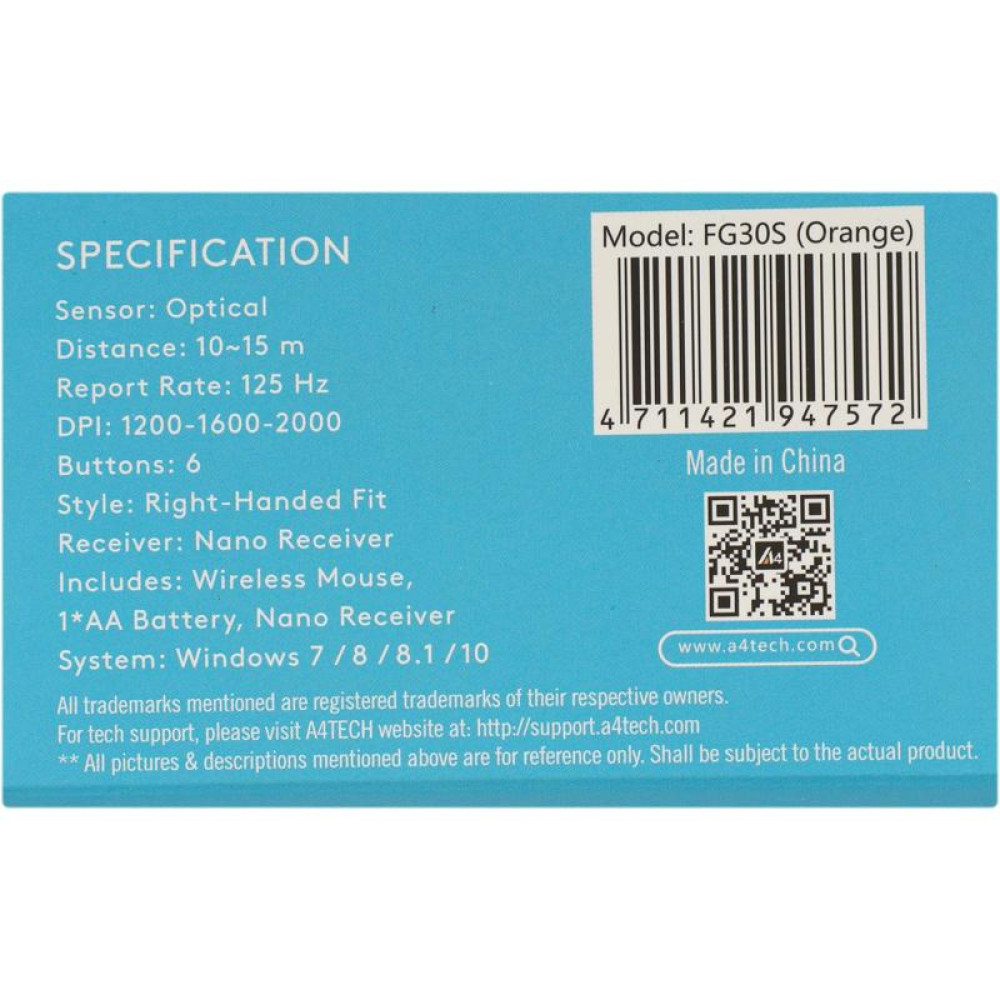 Мышь A4Tech Fstyler FG30S серый/оранжевый оптическая 2000dpi silent беспров. USB 6but (FG30S ORANGE)