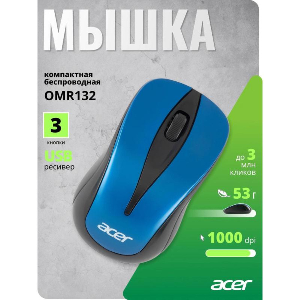 Мышь Acer OMR132 синий/черный оптическая 1000dpi беспров. USB для ноутбука 3but (ZL.MCEEE.01F)