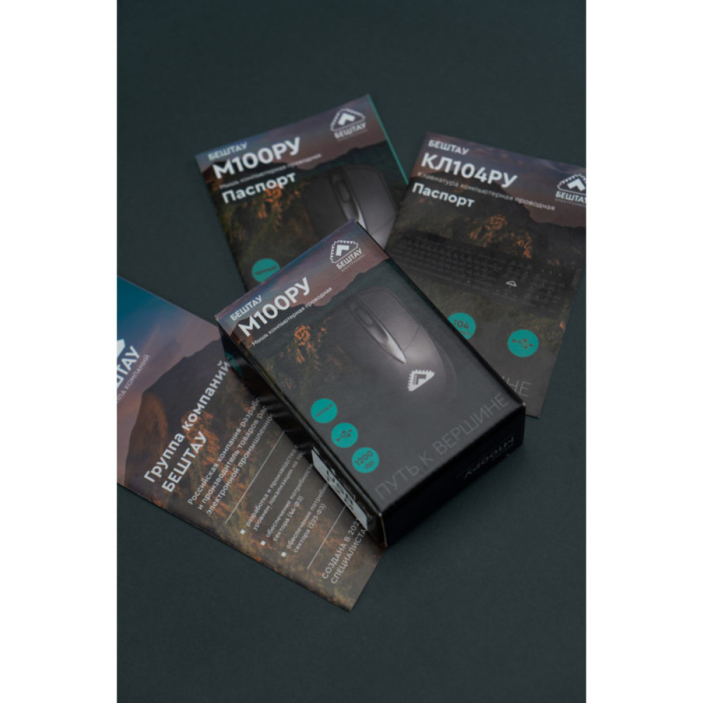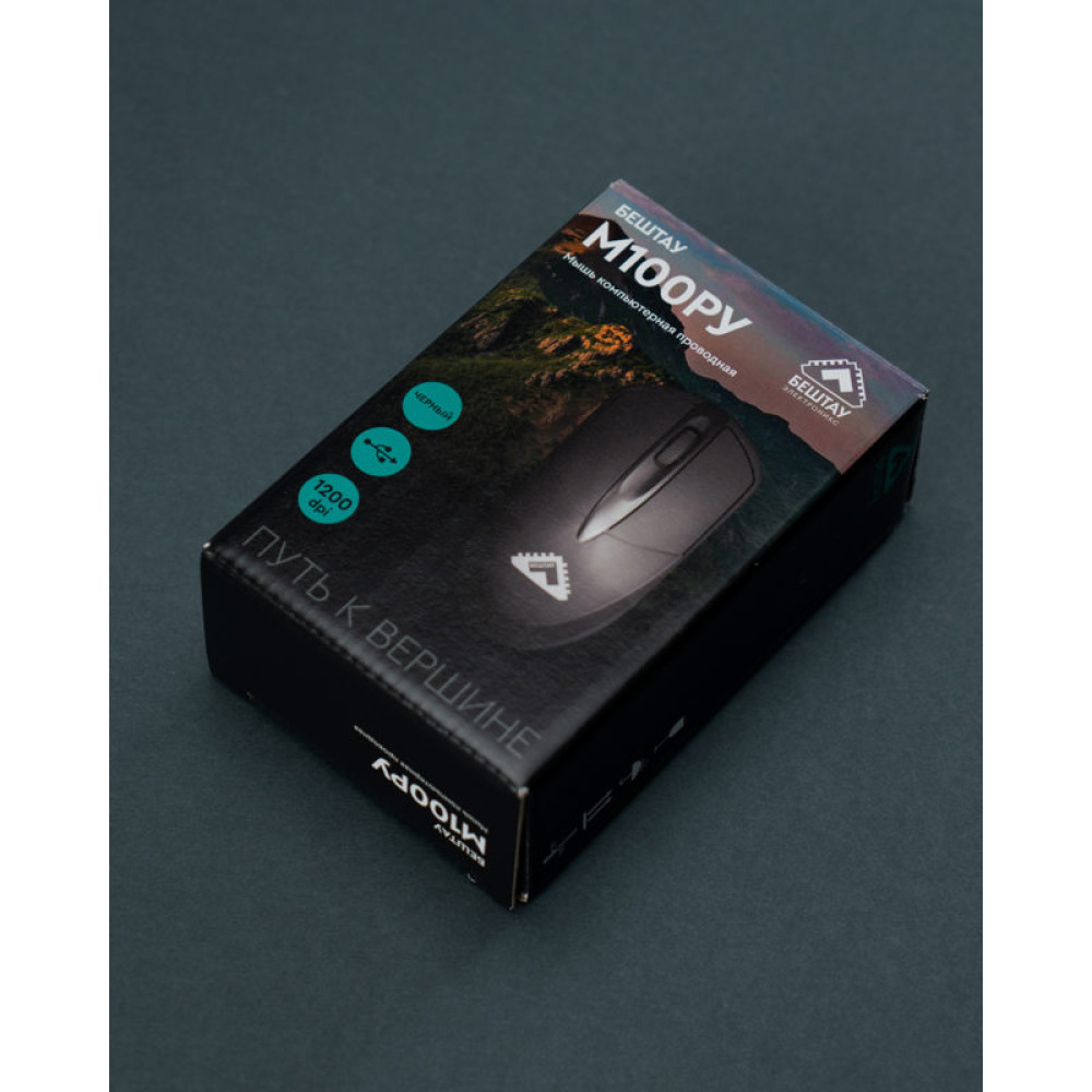 Мышь Мышь компьютерная БЕШТАУ проводная М100РУ Две кнопки и колесо прокрутки, USB, 1200 точек на дюйм, 1,8м, черная