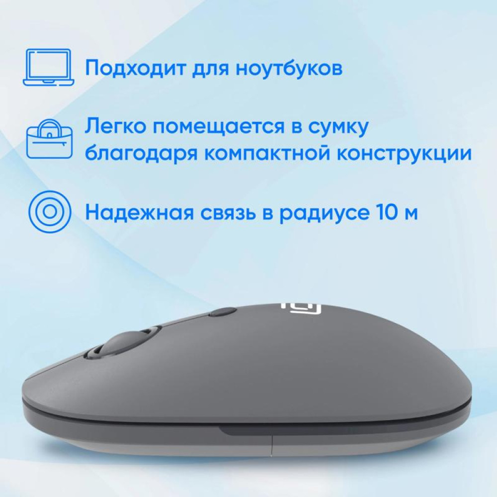 Мышь Oklick 408MW графитовый оптическая 1600dpi silent беспров. USB для ноутбука 4but (2007533)