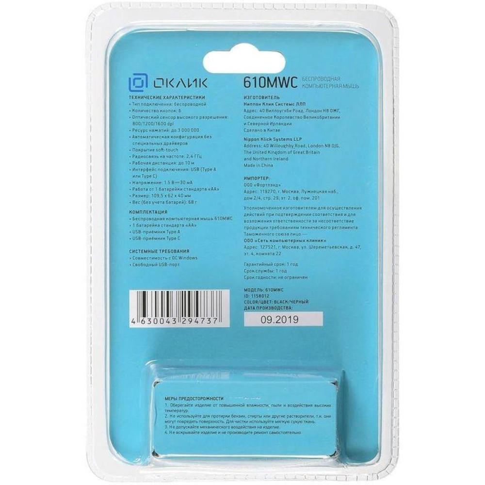 Мышь Oklick 610MWC черный оптическая 1600dpi беспров. USB/USB-C для ноутбука 6but (1158012)