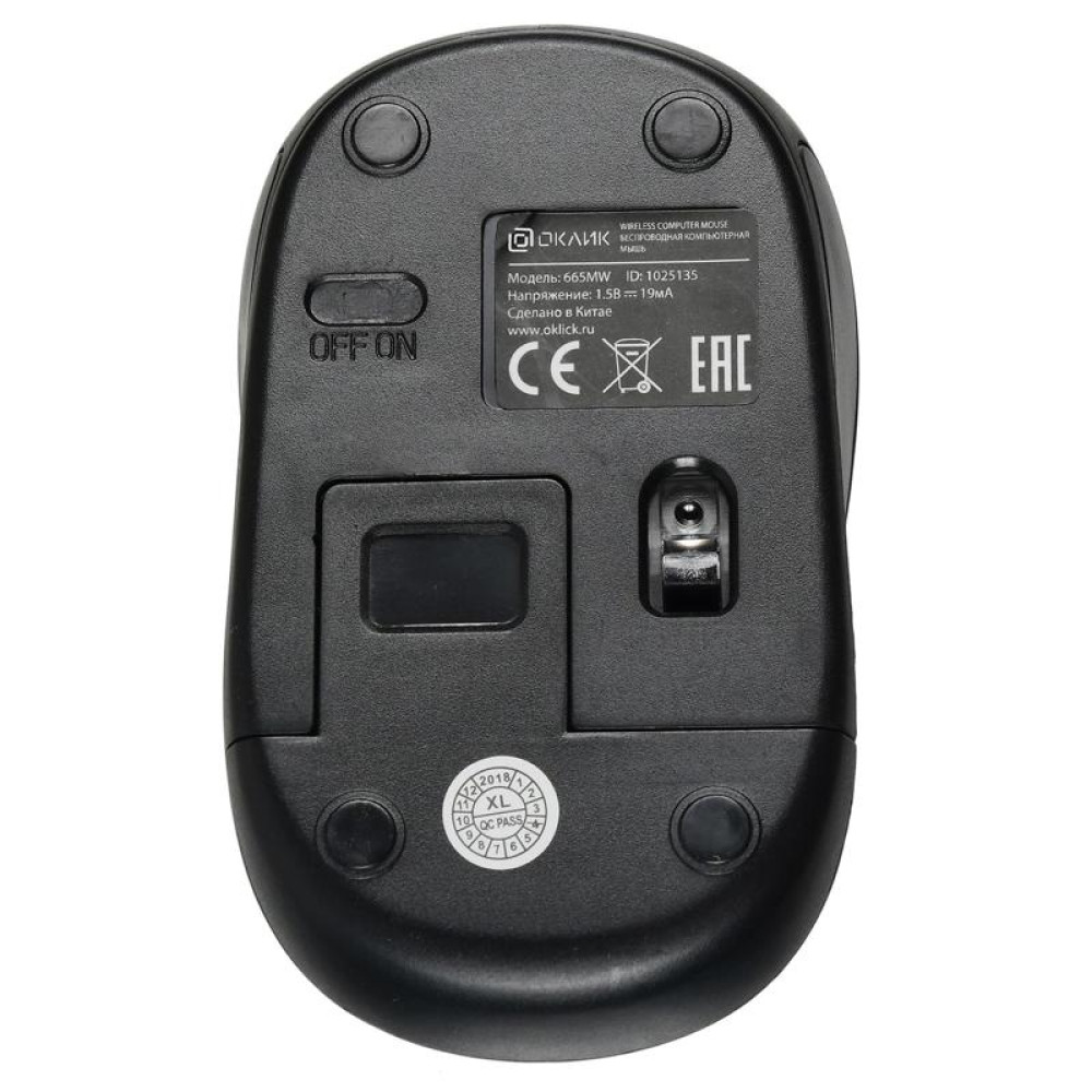 Мышь Oklick 665MW черный/красный оптическая 1600dpi беспров. USB для ноутбука 3but (1025135)