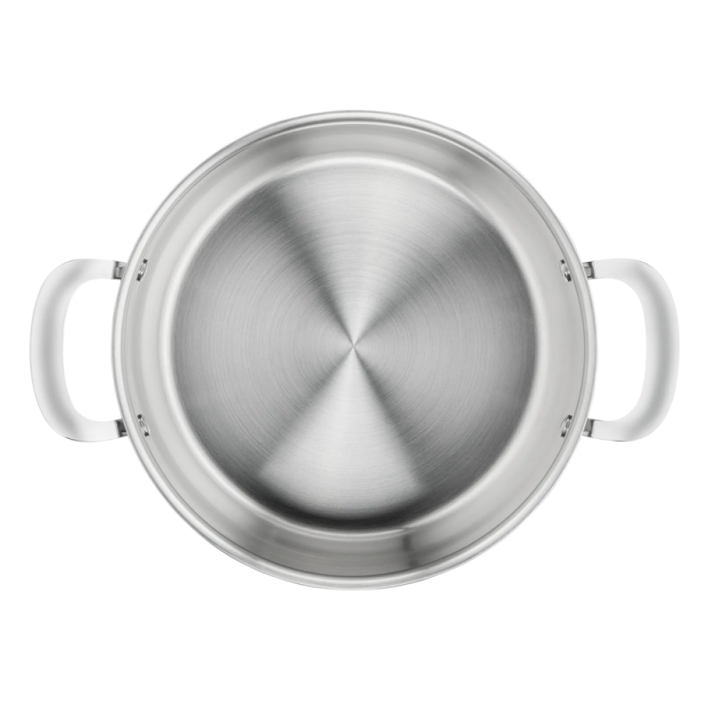 Набор изготовлен из высококачественной нержавеющей стали, которая обеспечивает прочность, устойчивость к коррозии и долгий срок службы. Материал ручек и крышек также выполнен из нержавеющей стали, что гарантирует надежность и безопасность при использовании. Посуда выдерживает высокие температуры и интенсивную эксплуатацию, сохраняя свой первоначальный вид.