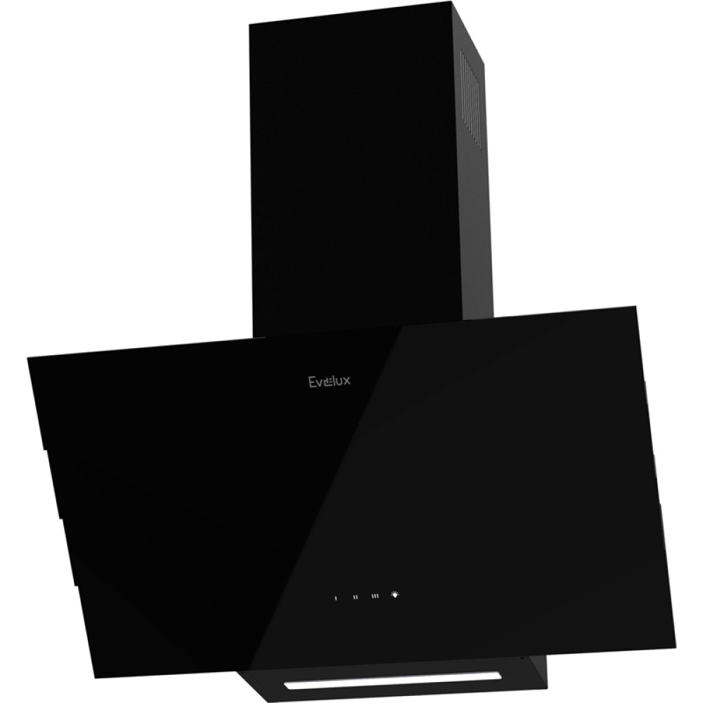 Наклонная вытяжка, 60 см, электронное управление, сенсорная панель, 3 скорости работы, производительность 920 м3/ч, LED освещение, черный, металл, стекло, 600х355х395-607 мм.