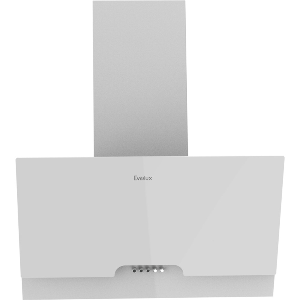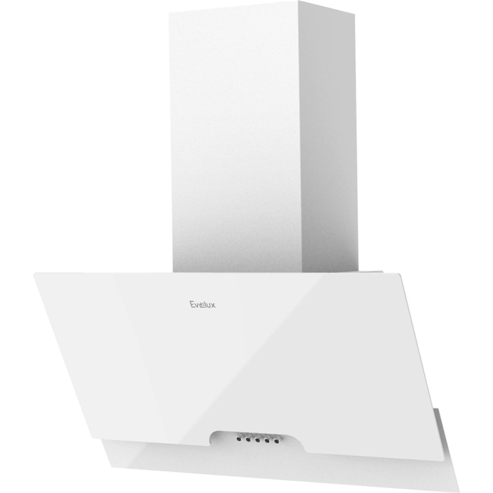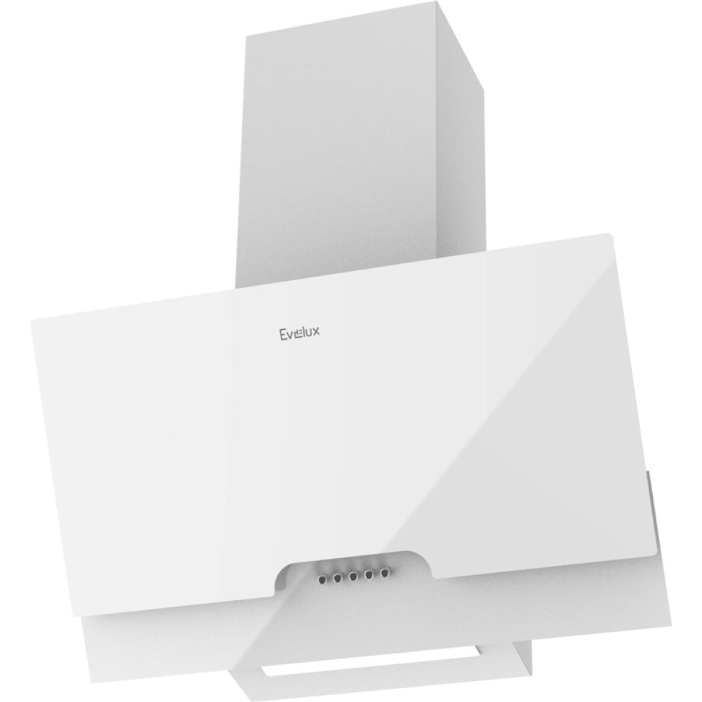Наклонная вытяжка, 60 см, механический контроль, 3 скорости работы, производительность 900 м3/ч, LED освещение, белый, металл, стекло, 600х335х395-607 мм.