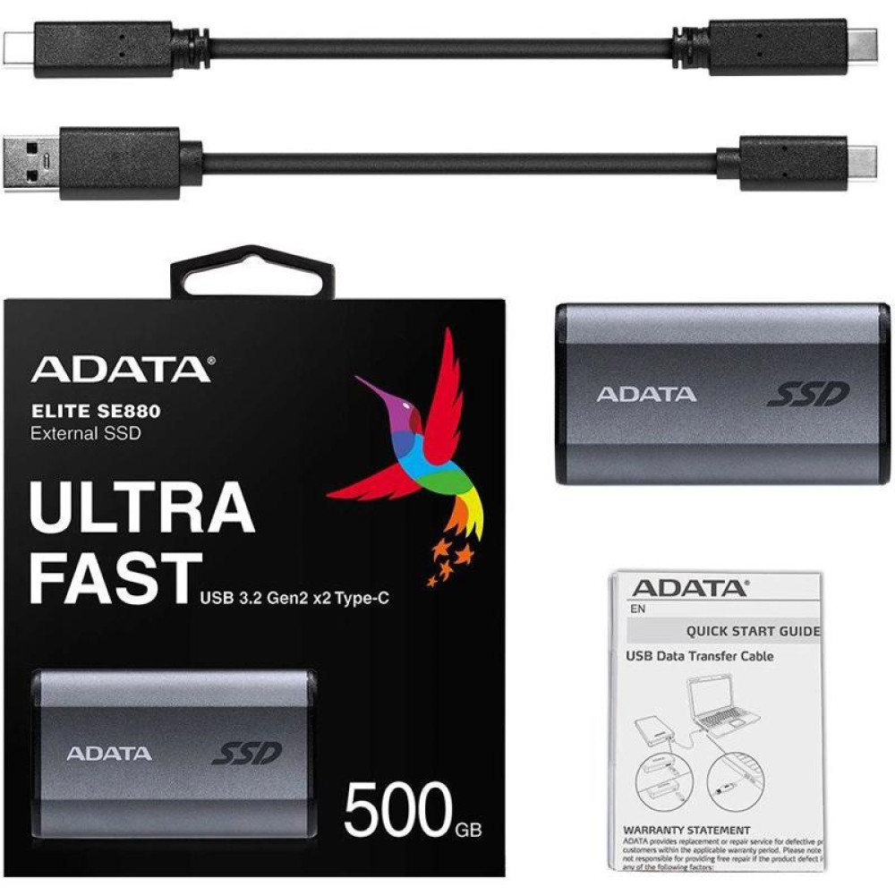 Накопитель SSD A-Data USB-C 500Gb AELI-SE880-500GCGY SE880 2.5" серый