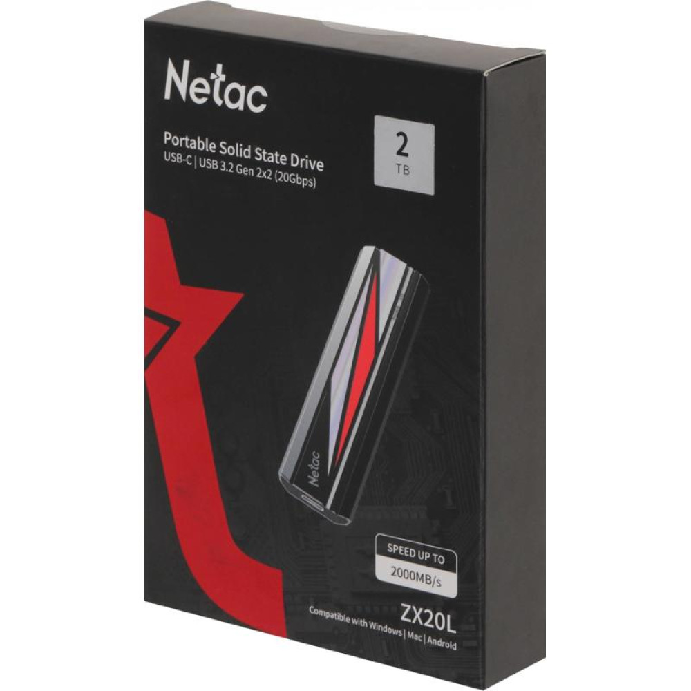 Накопитель SSD Netac USB-C 2TB NT01ZX20L-002T-32BK ZX20L черный