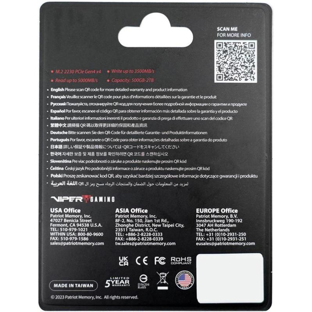 Накопитель SSD Patriot PCIe 4.0 x4 500GB VP4000M500GM23 VP4000 Mini M.2 2230