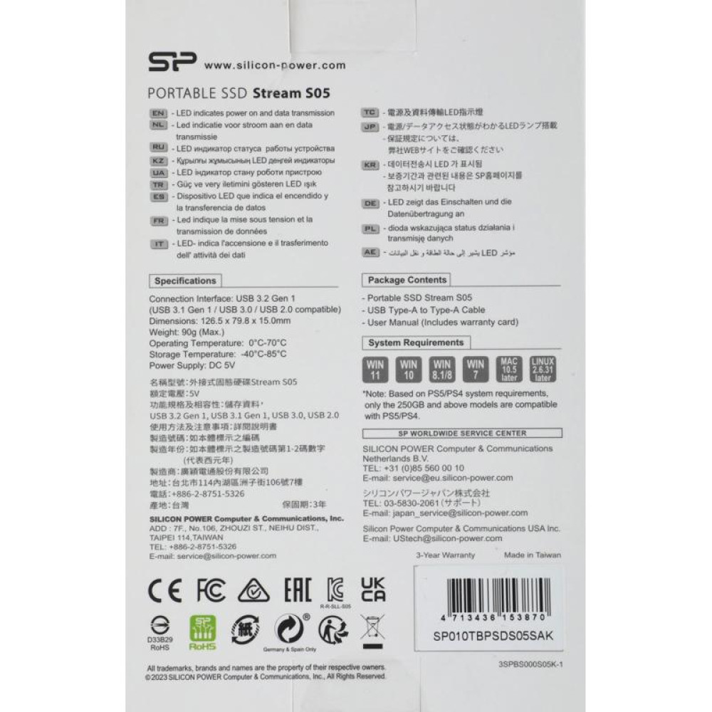 Накопитель SSD Silicon Power USB3.0 1TB SP010TBPSDS05SAK S05 Stream 1.8" черный