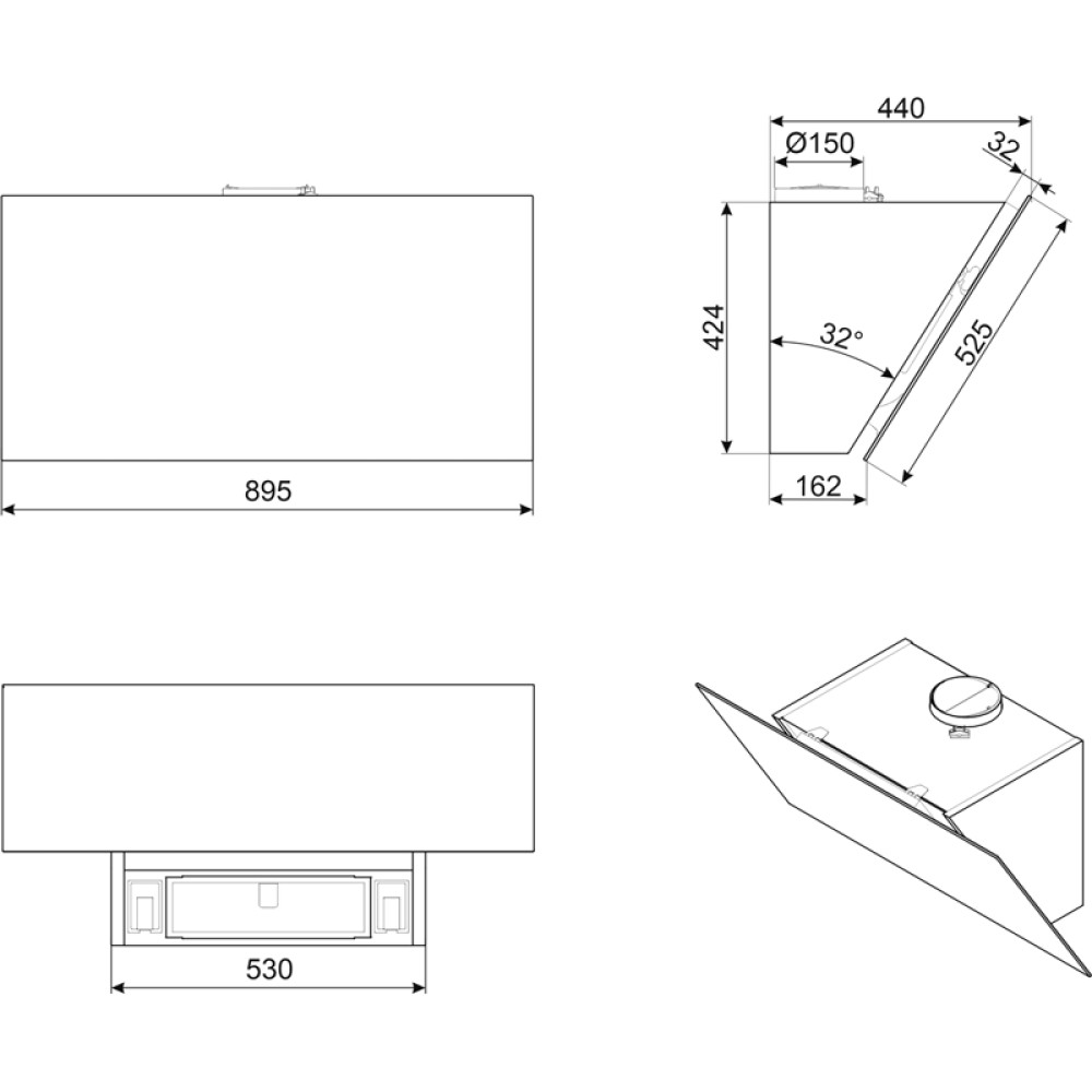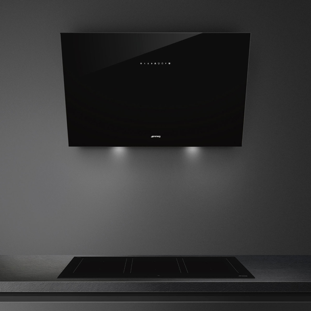 Настенная вытяжка SMEG/ Настенная вытяжка SMEG, 90 см, 3 скорости, интенсивный режим, автоматическое отключение, автовентиляция 2.0, сенсорное управление, периметральное всасывание, цвет черный