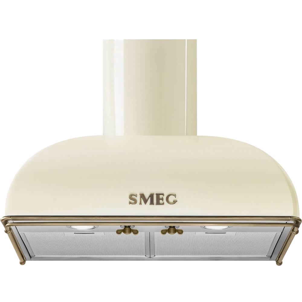 Настенная вытяжка SMEG/ Настенная вытяжка SMEG, поворотные переключатели, LED освещение, максимальная производительность 754 м3/ч, 3 скорости + интенсивный режим, фурнитура латунная, цвет кремовый