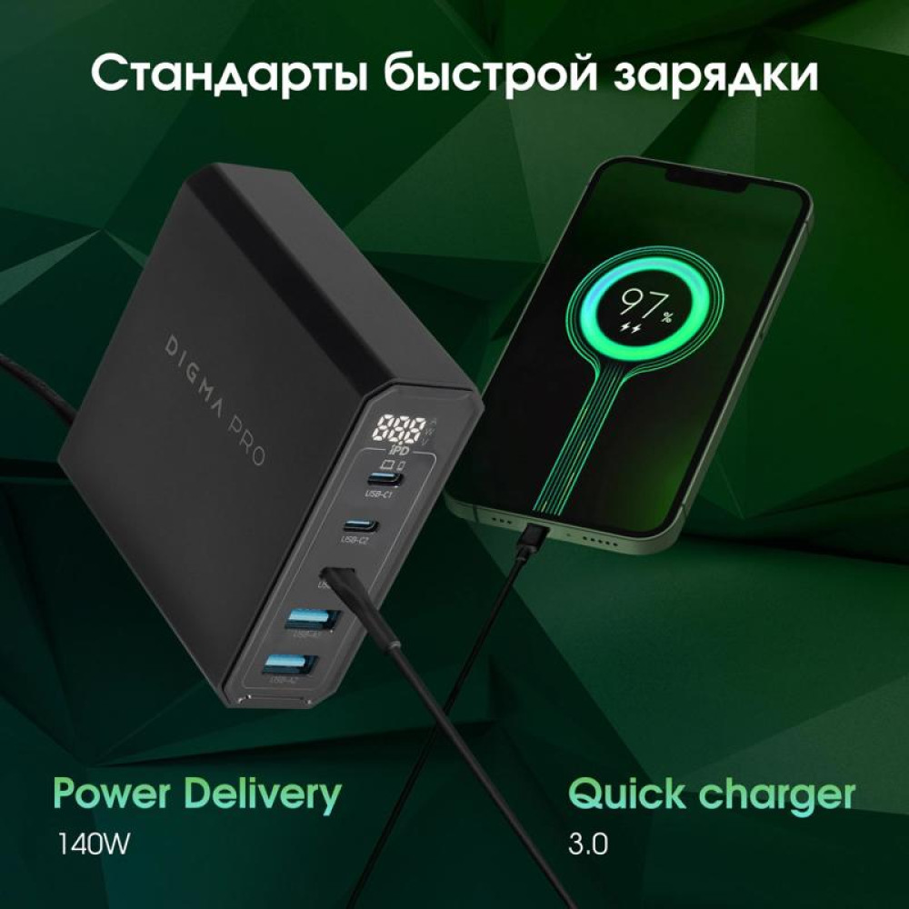 Настольное зар./устр. Digma Pro DPW10A 140W 5A (PD+QC) 3хUSB-C/2xUSB-A универсальное черный (DPW1A4G024BK)