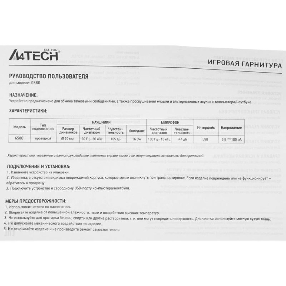 Наушники с микрофоном A4Tech Bloody G580 черный 2м мониторные USB оголовье (G580 USB /BLACK)