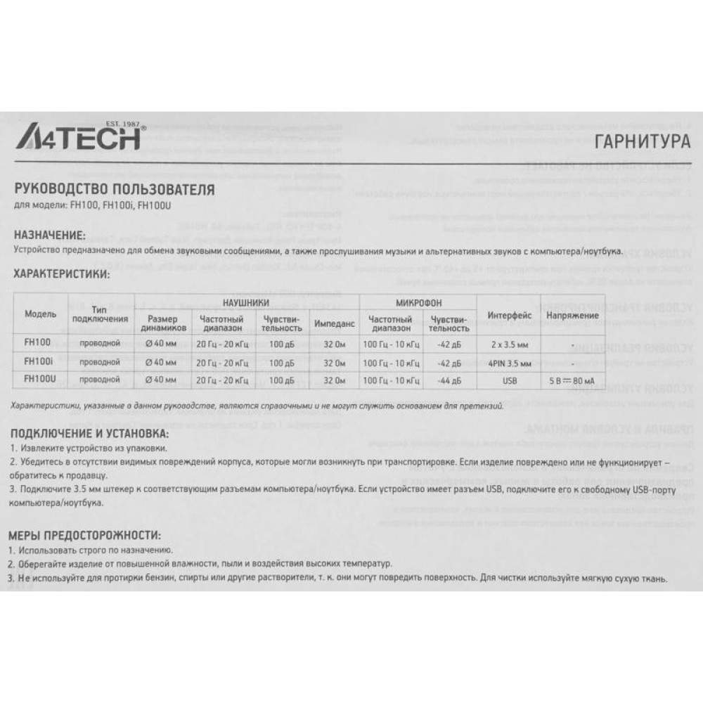 Наушники с микрофоном A4Tech Fstyler FH100 черный 2м накладные оголовье (FH100 (STONE BLACK))