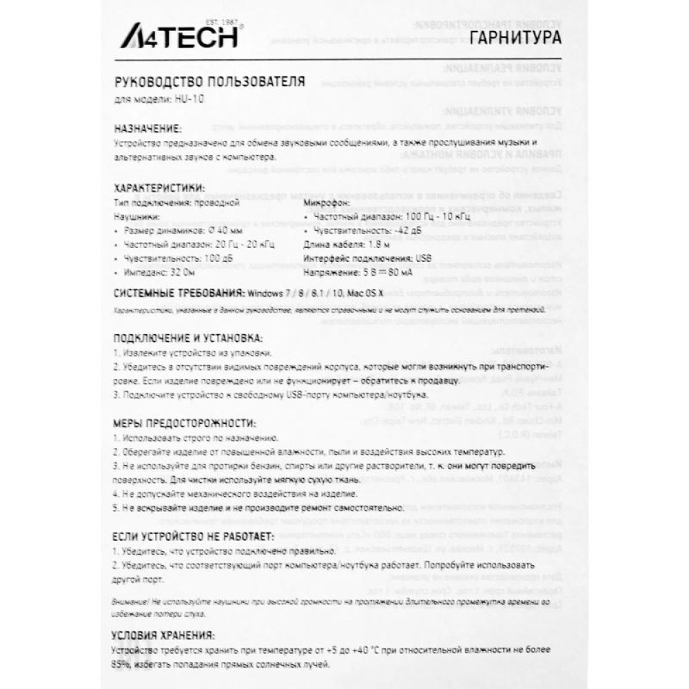 Наушники с микрофоном A4Tech HU-10 черный/белый 2м накладные USB оголовье (HU-10/USB/BLACK+WHITE)