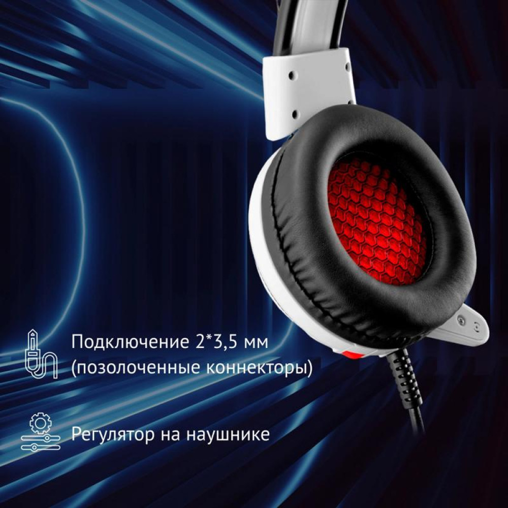 Наушники с микрофоном Oklick HS-G300 ARMAGEDDON белый/черный 2.2м мониторные оголовье (361558)