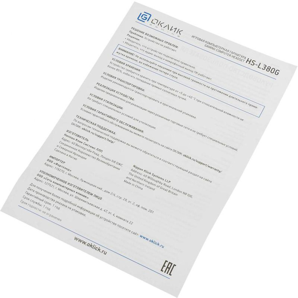 Наушники с микрофоном Oklick HS-L380G ABADDON черный/красный 1.8м мониторные оголовье (1100404)