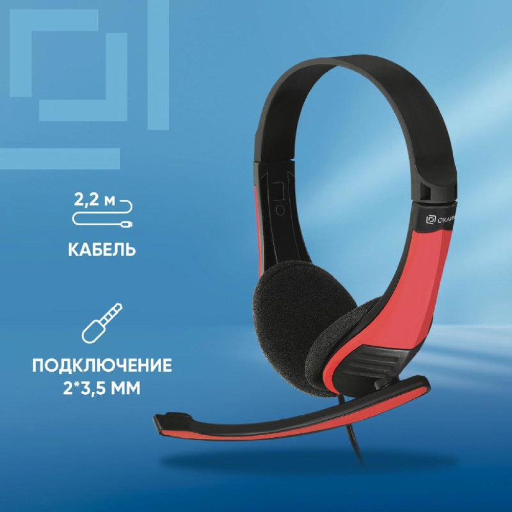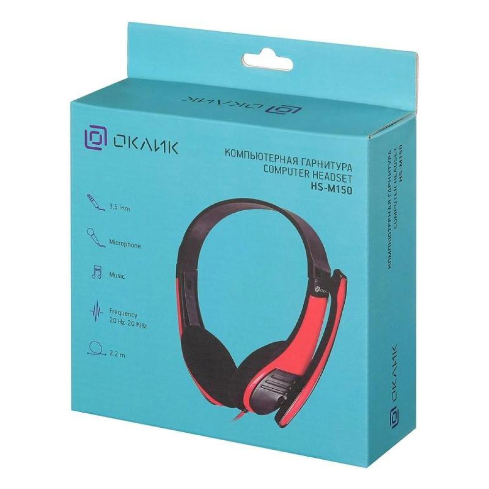 Наушники с микрофоном Оклик HS-M150 черный/красный 2.2м накладные оголовье (359486)