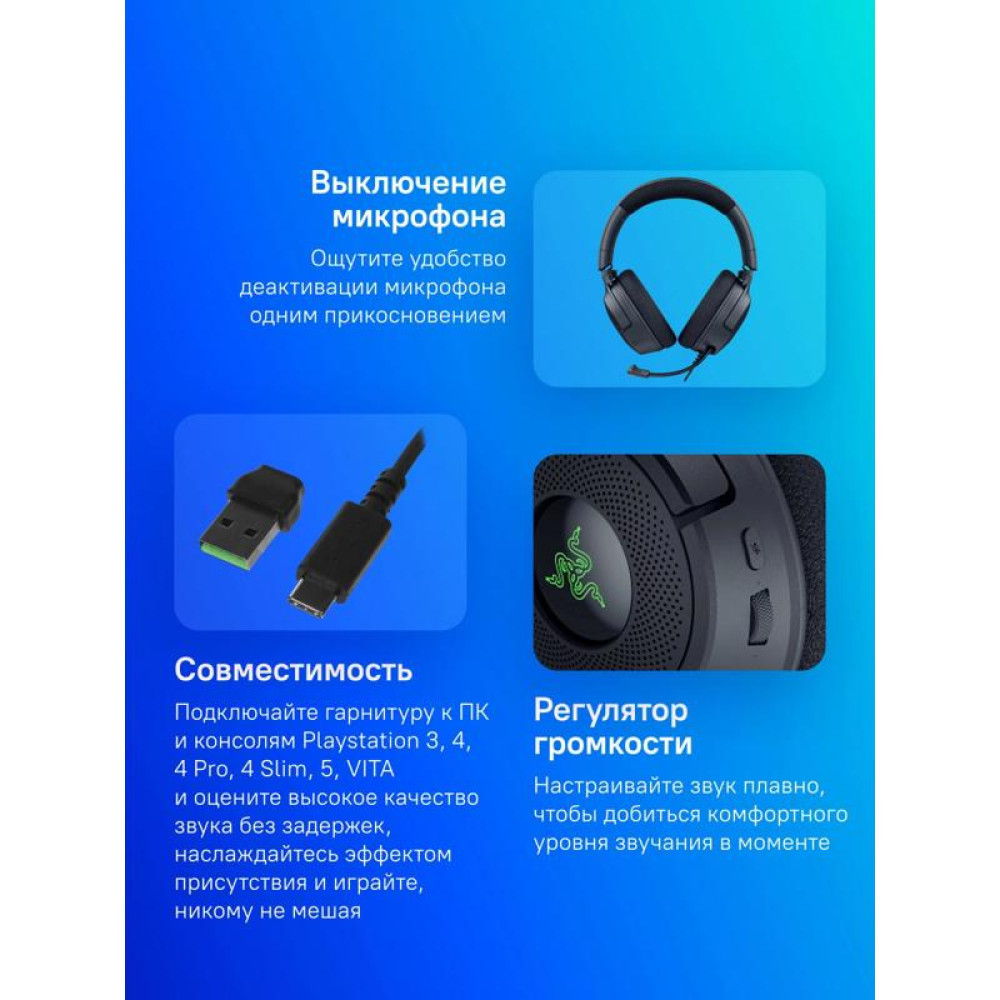 Наушники с микрофоном Razer Kraken V4 X черный 2.0м мониторные USB оголовье (RZ04-05180100-R3M1)