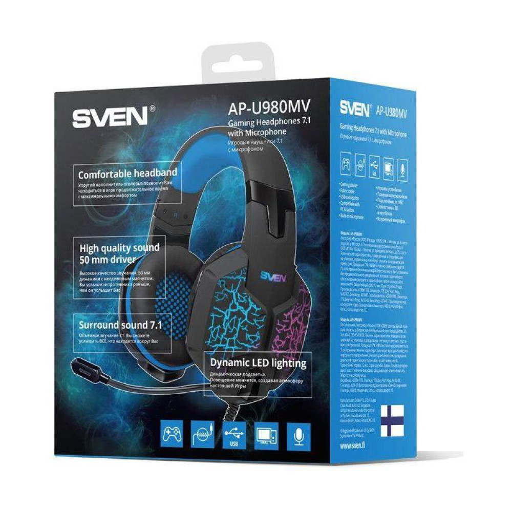 Наушники с микрофоном Sven AP-U980MV черный/синий 2.2м мониторные оголовье (SV-015633)
