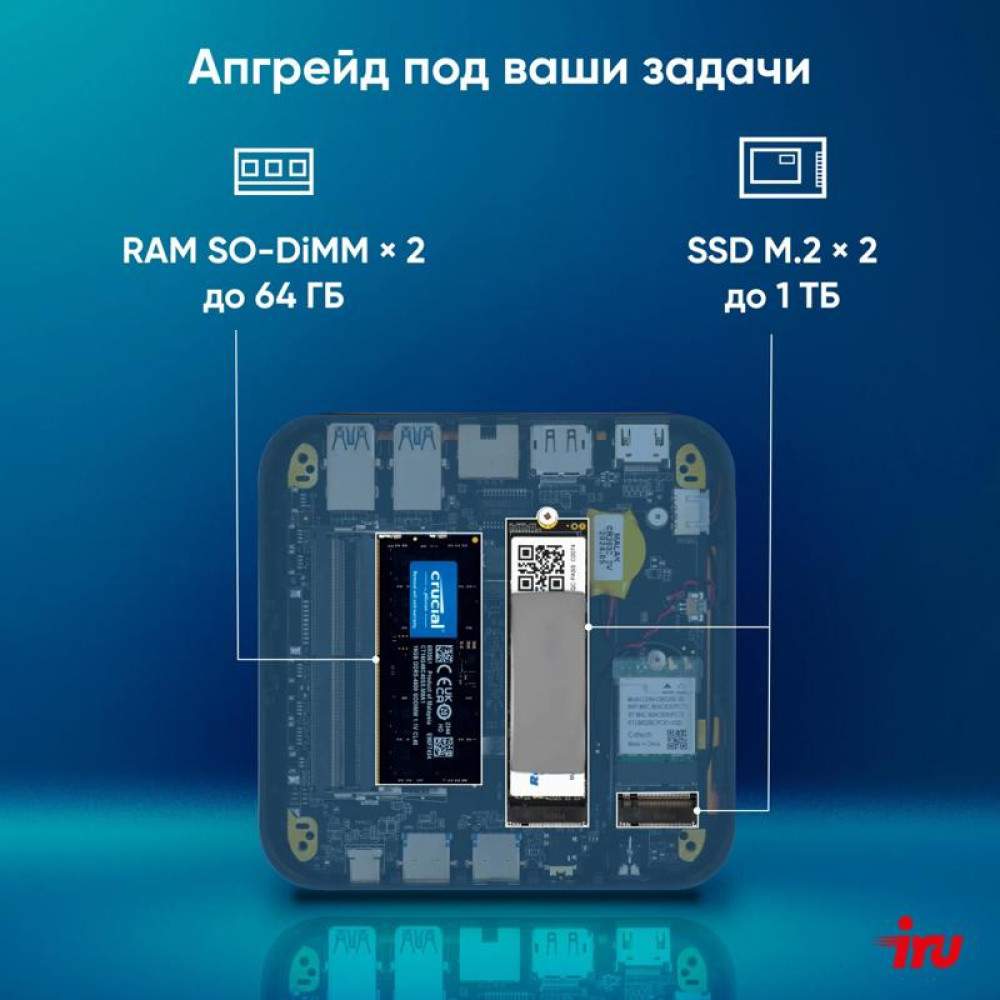 Неттоп IRU Planio 325 Ryzen 5 3500U (2.1) 16Gb SSD512Gb Vega 8 Windows 11 Pro GbitEth WiFi BT 65W черный (2105312)