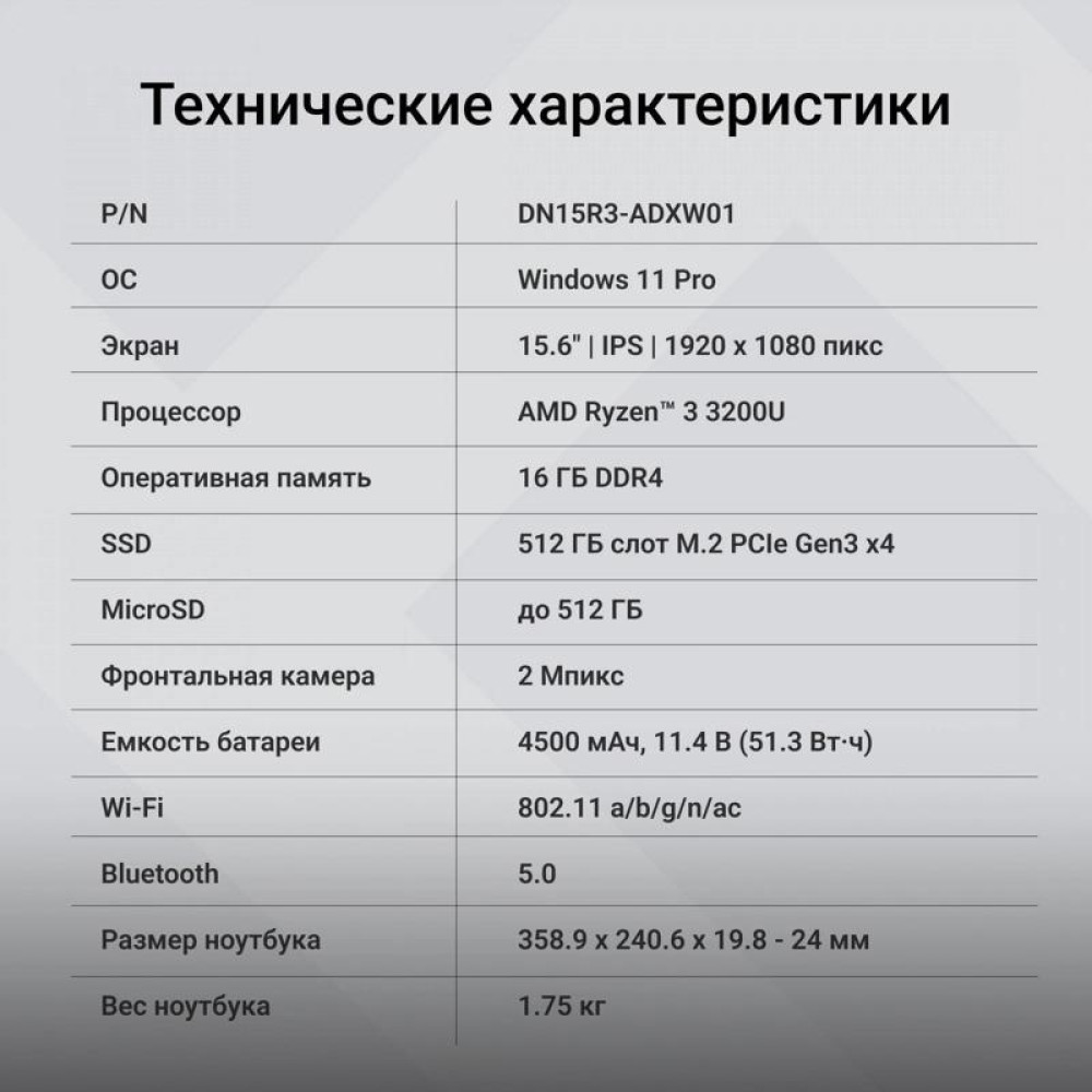 Ноутбук Digma EVE A5820 Ryzen 3 3200U 16Gb SSD512Gb AMD Radeon 15.6" IPS FHD (1920x1080) Windows 11 Professional black WiFi BT Cam 4500mAh (DN15R3-ADXW01)