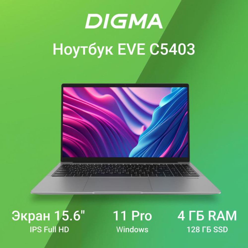 Ноутбук Digma EVE C5403 Celeron N4020 4Gb SSD128Gb Intel UHD Graphics 600 15.6" IPS FHD (1920x1080) Windows 11 Professional silver WiFi BT Cam 5000mAh (DN15CN-4BXW02)