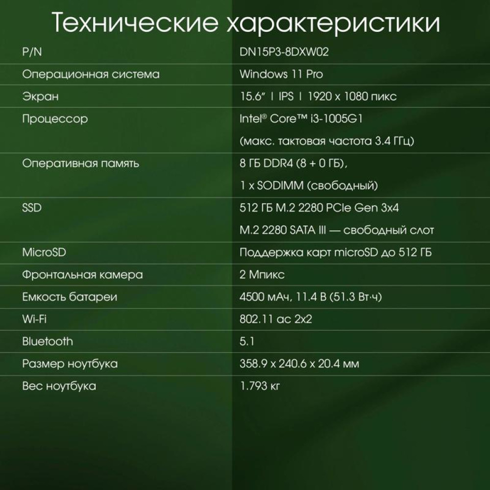 Ноутбук Digma Pro Breve S Core i3 1005G1 8Gb SSD512Gb Intel UHD Graphics 15.6" IPS FHD (1920x1080) Windows 11 Professional dk.grey WiFi BT Cam 4500mAh (DN15P3-8DXW02)