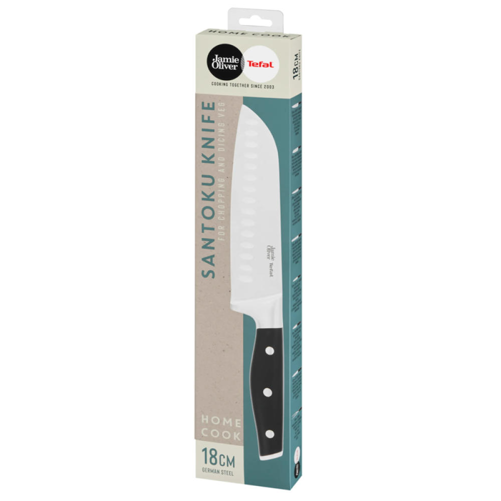 Нож сантоку Tefal Jamie Oliver 18 см K2671844 — это специализированный кухонный нож, разработанный в сотрудничестве с известным шеф-поваром Джейми Оливером. Этот нож предназначен для выполнения широкого спектра задач на кухне, от нарезки овощей до разделки мяса, что делает его незаменимым помощником для любого кулинара.
