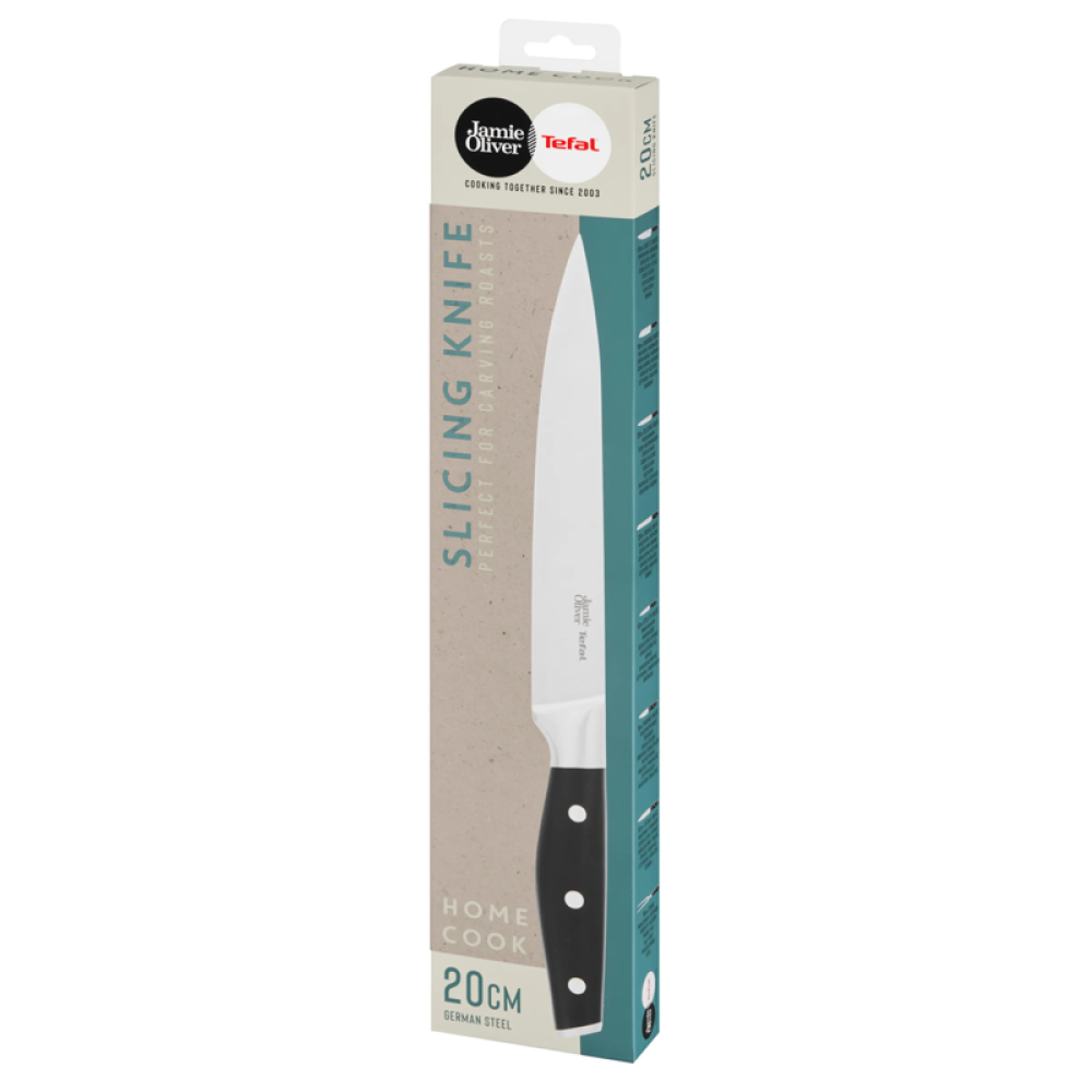 Универсальный нож Tefal Jamie Oliver 20 см K2670244 — это высококачественный кухонный инструмент, разработанный в сотрудничестве с известным шеф-поваром Джейми Оливером. Этот нож предназначен для выполнения широкого спектра задач на кухне, от нарезки овощей до разделки мяса, что делает его незаменимым помощником для любого кулинара.
