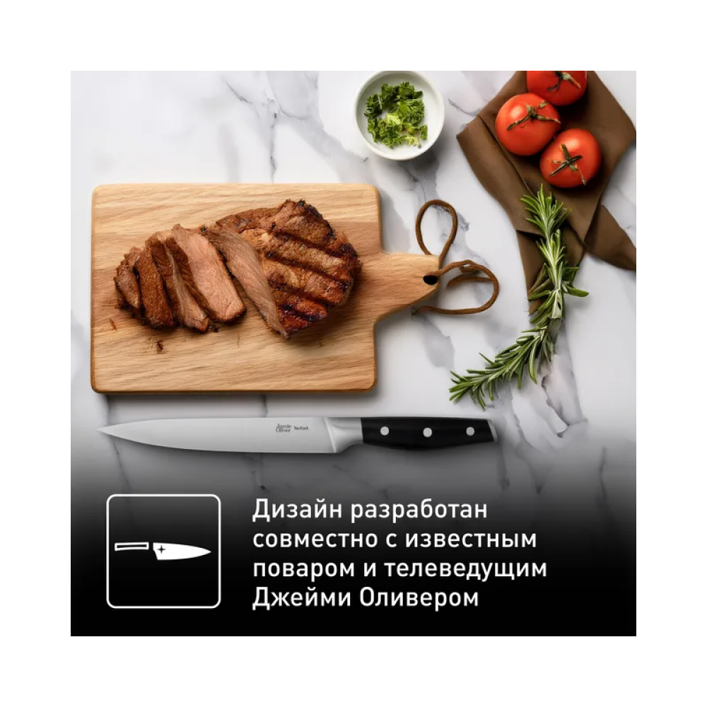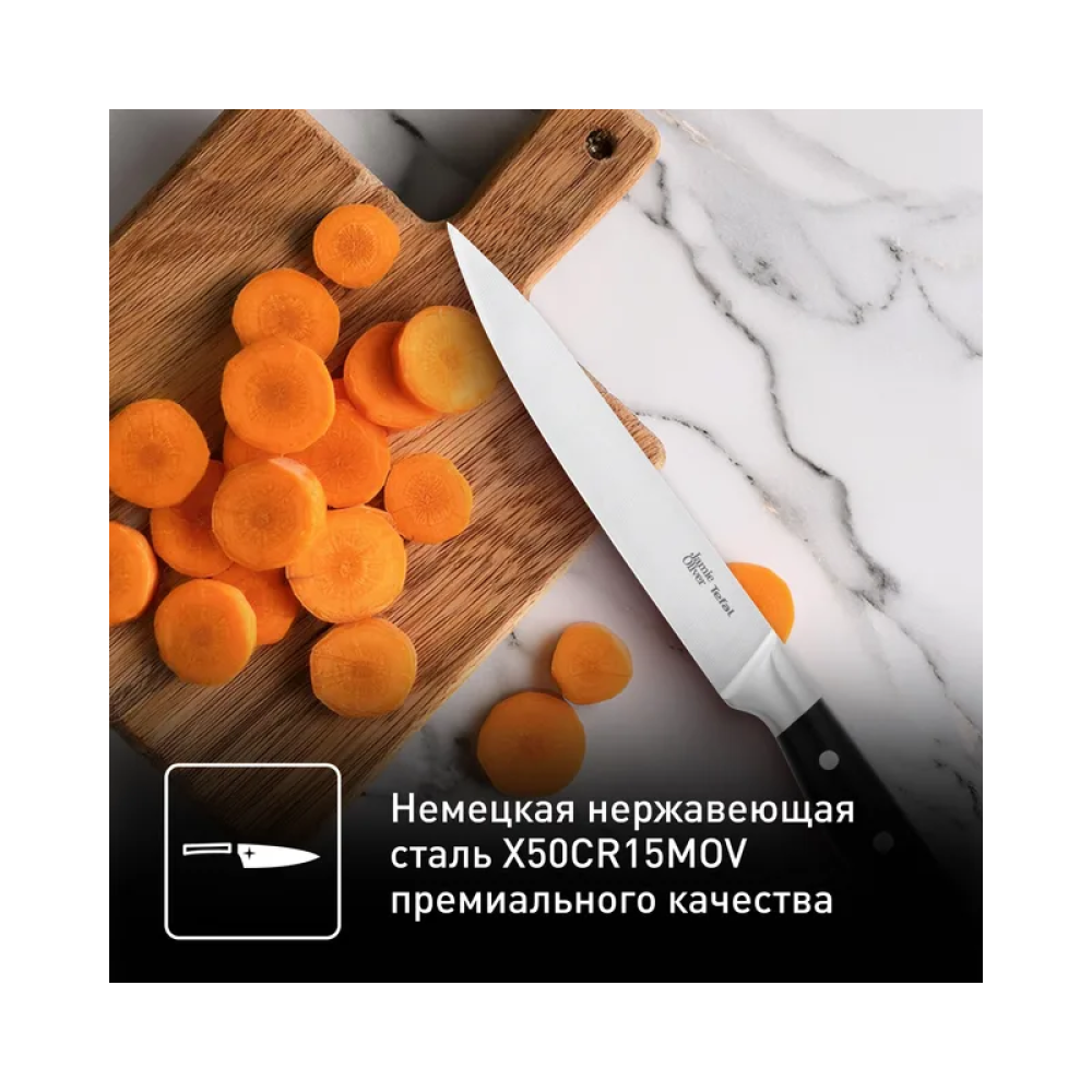 Нож разработан в сотрудничестве с известным шеф-поваром Джейми Оливером, что гарантирует его высокое качество и надежность. Использование высококачественных материалов и продуманный дизайн делают этот нож отличным выбором для профессиональных поваров и любителей кулинарии.