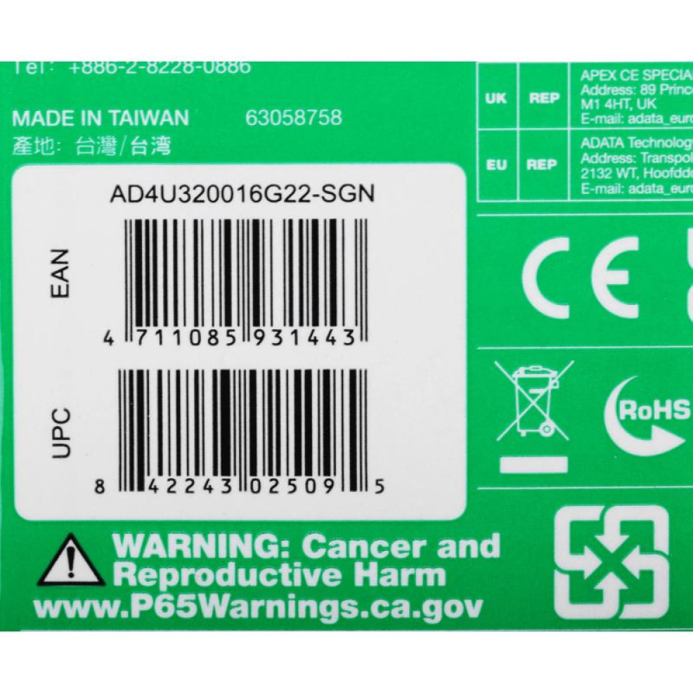Оперативная память DDR4 16Gb 3200MHz A-Data AD4U320016G22-SGN Premier RTL PC4-25600 CL22 DIMM 288-pin 1.2В single rank Ret [AD4U320016G22-SGN]