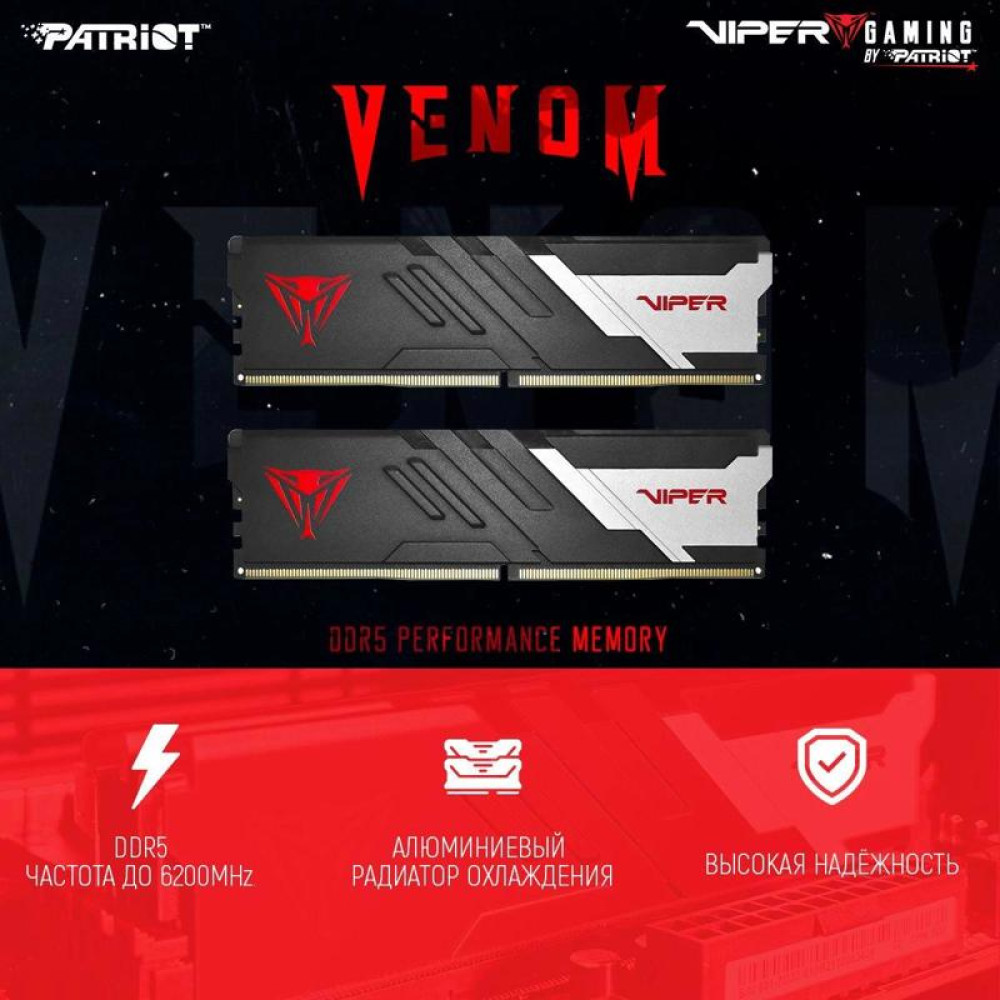 Оперативная память DDR5 2x16GB 6000MHz Patriot PVV532G600C30K Viper Venom RTL Gaming PC5-38400 CL30 DIMM 288-pin 1.35В kit с радиатором Ret [PVV532G600C30K]