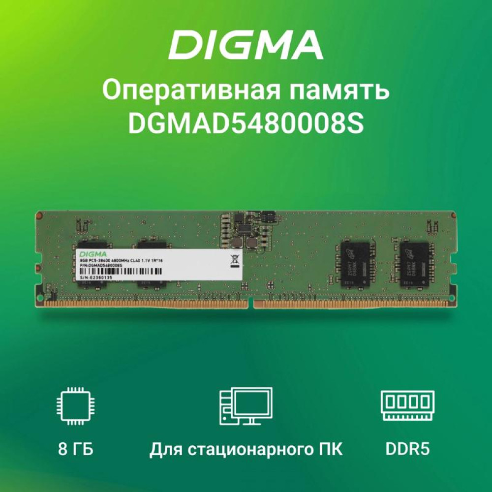 Оперативная память DDR5 8Gb 4800MHz Digma DGMAD5480008S RTL PC5-38400 CL40 DIMM 288-pin 1.1В single rank Ret [DGMAD5480008S]