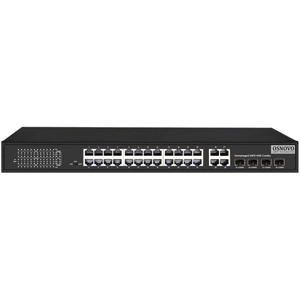 OSNOVO PoE коммутатор 24 x 10/100 Base-T PoE, 4 x GE Combo Uplink RJ45/SFP, PoE на порт - до 30W, суммарно PoE до 385W
