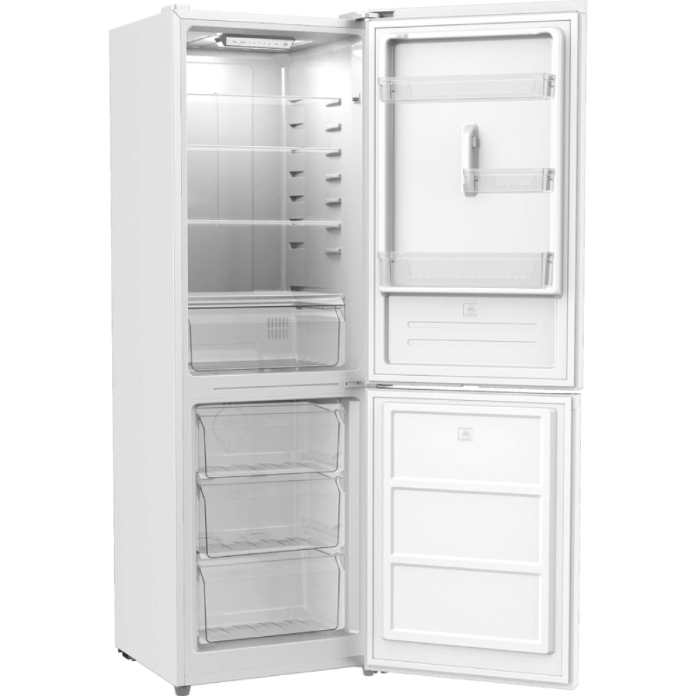 Отдельностоящий холодильник EVELUX, объем 290 л, объем холодильной камеры 201, объем морозильной камеры 89, цифровой дисплей, LED освещение, NoFrost, перенавешиваемые двери, энергоэффективность А+, уровень шума 41 дБ, цвет белый