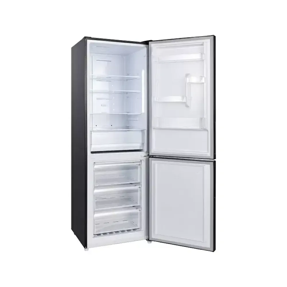 Отдельностоящий холодильник EVELUX, объем 317 л, объем холодильной камеры 233, объем морозильной камеры 94, цифровой дисплей, сенсорное управление, , LED освещение, NoFrost, перенавешиваемые двери, энергоэффективность А+, уровень шума 41 дБ, цвет черная н