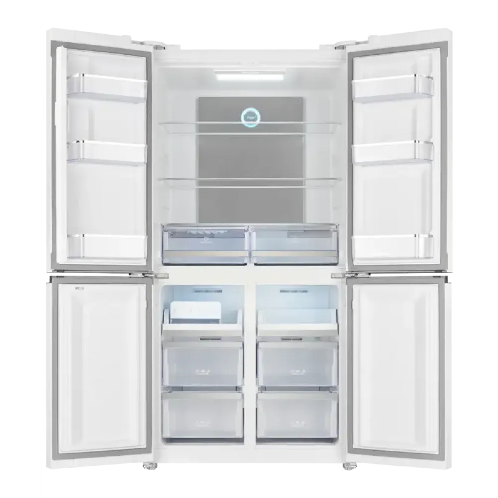 Холодильник Kuppersberg NFFD 183 WG выполнен в эффектном лаконичном дизайне, оснащен четырьмя распашными дверцами. Корпус изготовлен из нержавеющей стали, устойчив к износу и механическим повреждениям. Управление сенсорное, панель вынесена на фасад холодильника. На цифровом дисплее отображаются параметры работы устройства в данный момент. Существует возможность регулировать температуру, дополнительные функции устройства.Система No Frost избавляет от необходимости проводить частую разморозку камеры, автоматически удаляя иней и влагу со стенок. Специальная вентиляция обеспечивает постоянный обдув камеры, равномерно распределяя температуру по всей площади. Динамическая система устраняет неприятные запахи из холодильника Kuppersberg NFFD 183 WG и предотвращает их смешивание.Яркое и равномерное освещение камеры дает возможность быстро найти нужный продукт. При включении функции Super Cool можно быстро охладить большое количество продуктов, закупленных впрок или к празднику. Опция Super Freeze чаще применяется в сезон заготовок и обеспечивает быструю заморозку фруктов, ягод, грибов, овощей, зелени. Даже в период внезапного отключения электроэнергии в морозильной камере Kuppersberg NFFD 183 WG будет поддерживаться оптимальная температура.