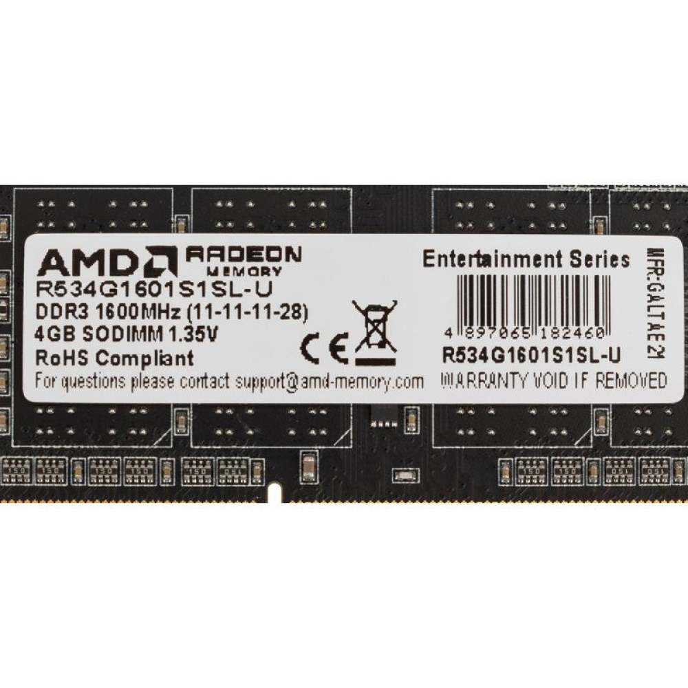Память DDR3 4Gb 1600MHz AMD R534G1601S1SL-U R5 RTL PC3-12800 CL11 SO-DIMM 204-pin 1.35В Ret