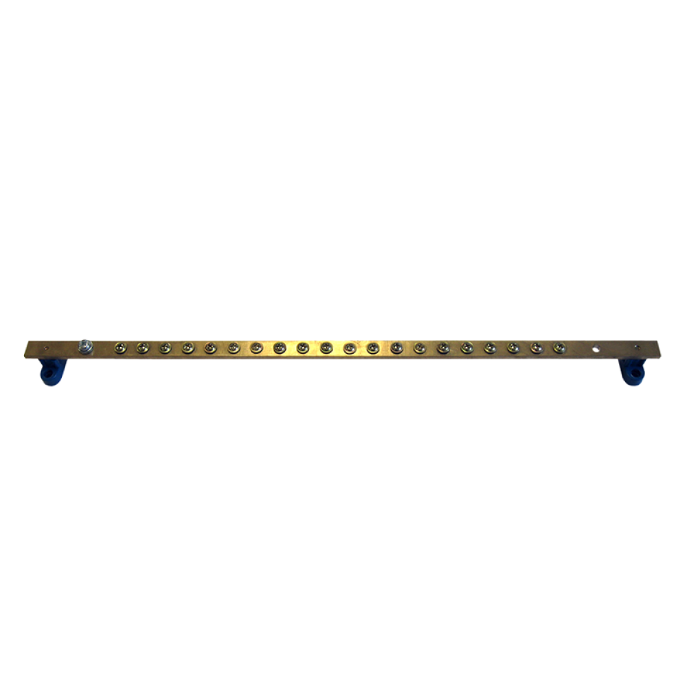 Панель заземления предназначена для установки в электротехнические корпуса, телекоммуникационные шкафы и стойки, для заземления установленного оборудования. Нагрузочная способность 200А. Представляет собой латунную шину сечением 5х15мм соединенную с монтажными кронштейнами диэлектрическими держателями. В зависимости от длины имеют: 19/500мм панель - 20 точек подключения с винтами М5, 2 точки заземления 25мм. Панель 1000 мм - 22 точки подключения с винтами М5, 2 точки заземления 25мм.