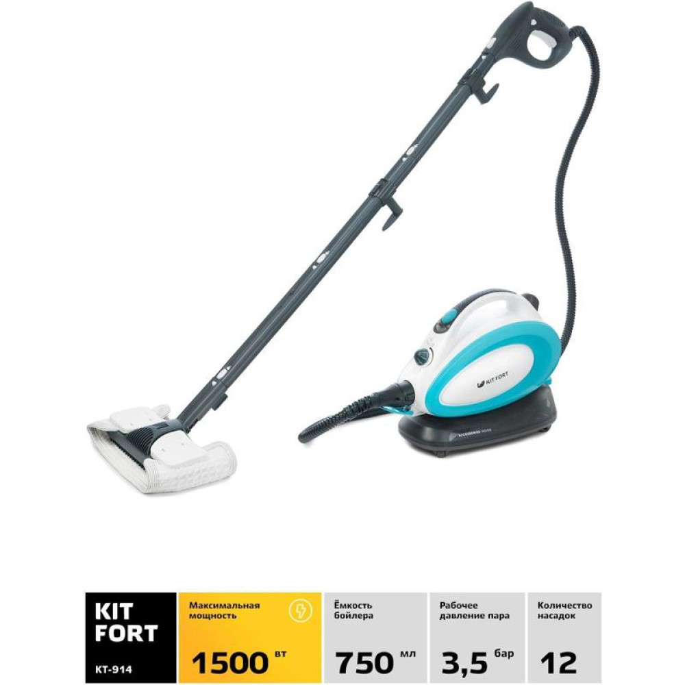 Пароочиститель напольный/ Пароочиститель напольный Kitfort КТ-914 1500Вт белый/голубой