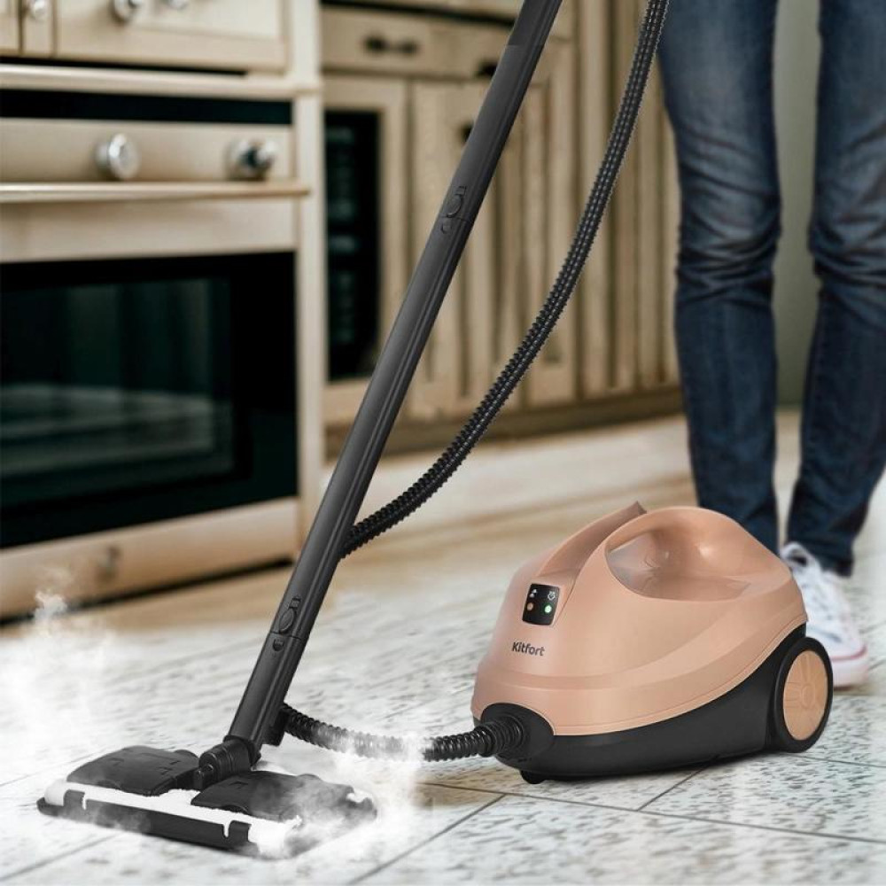 Пароочиститель напольный/ Пароочиститель напольный Kitfort КТ-9188 2000Вт бежевый/черный