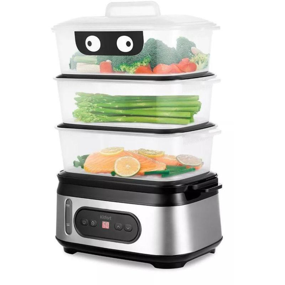 Пароварка Kitfort КТ-4082 3ярус. 800Вт серебристый