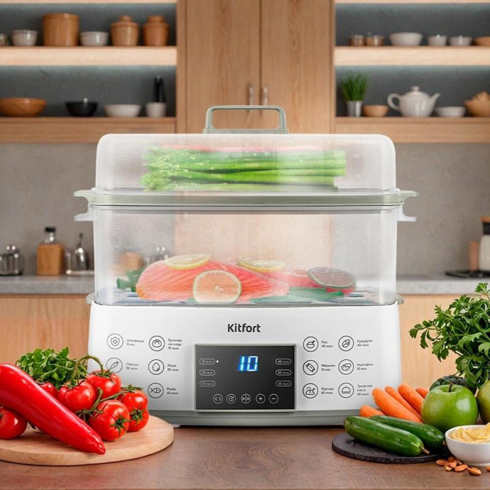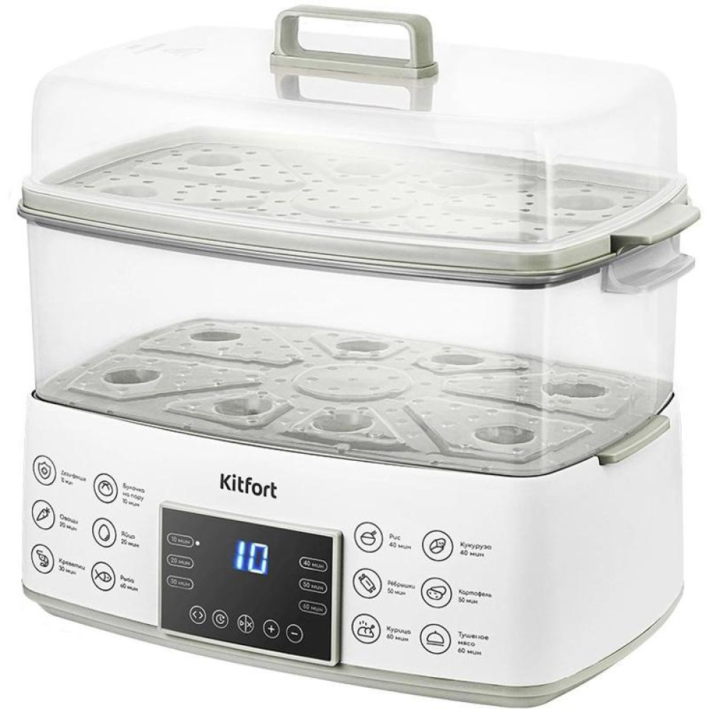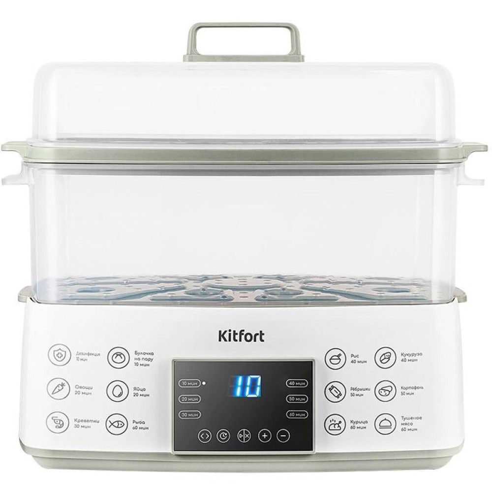 Пароварка Kitfort КТ-6431 2ярус. 800Вт белый/серый