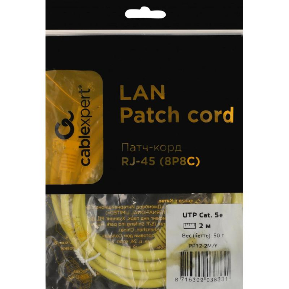 Патч-корд Premier PP12-2M/Y 1000Гбит/с UTP 4 пары cat.5E CCA molded 2м желтый RJ-45 (m)-RJ-45 (m)