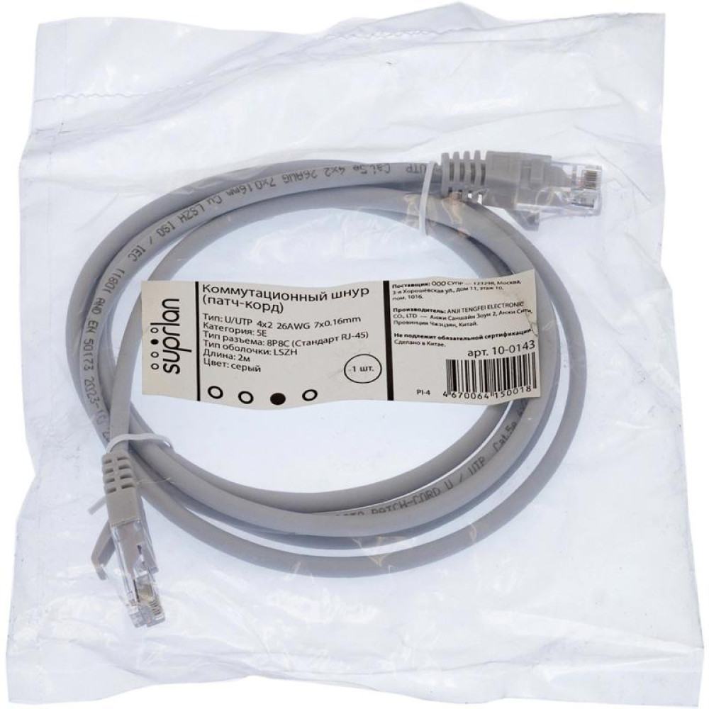 Патч-корд Suprlan 10-0143 UTP RJ-45 вил.-вилка RJ-45 кат.5E 2м серый LSZH 26AWG
