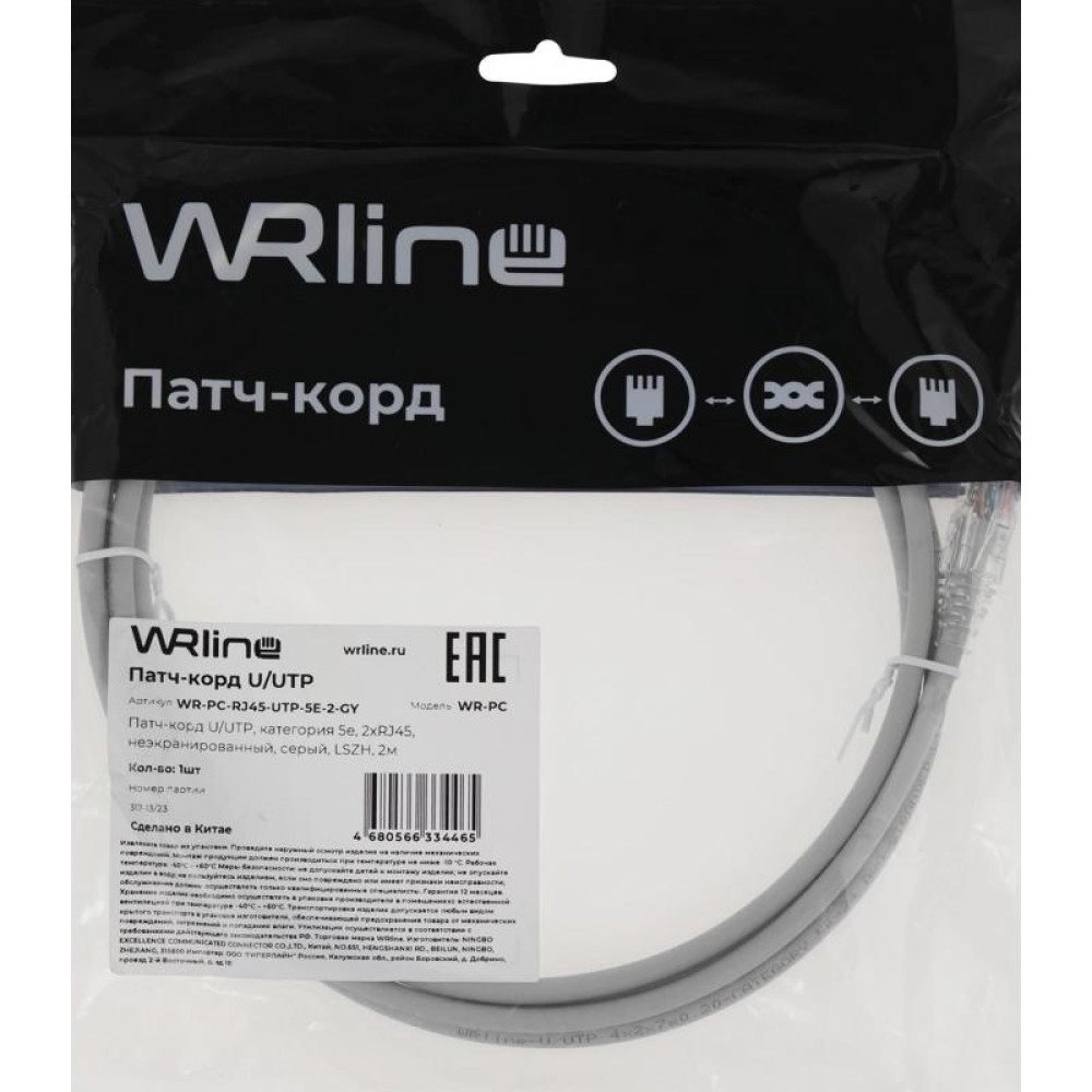 Патч-корд WRline WR-PC-RJ45-UTP-5E-2-GY UTP RJ-45 вил.-вилка RJ-45 кат.5E 2м серый LSZH (уп.:1шт)