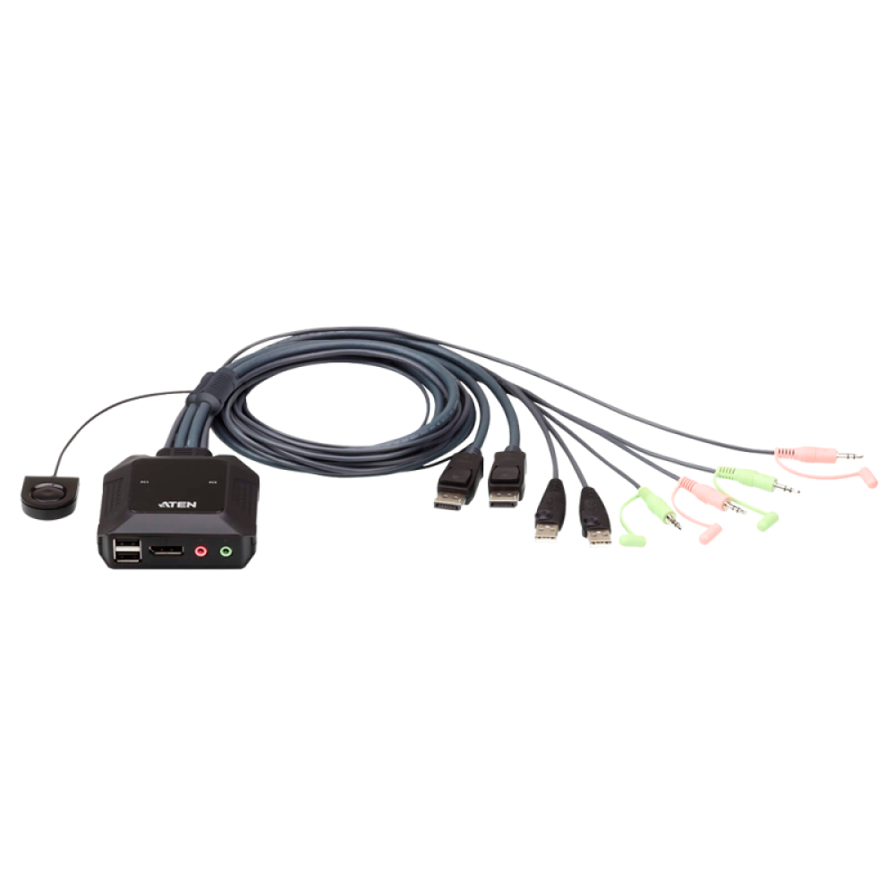 2-портовый USB, DisplayPort, кабельный KVM-переключатель CS22DP, это устройство управления, обеспечивающее доступ с одной консоли, оснащенной портами USB и DisplayPort (видео, клавиатура и мышь), а также поддержкой звука к двум компьютерам. С помощью кабельного KVM-переключателя CS22DP вы можете быстро и легко переключаться между двумя компьютерами с портами DisplayPort, используя удобный пульт удаленного переключения порта.
