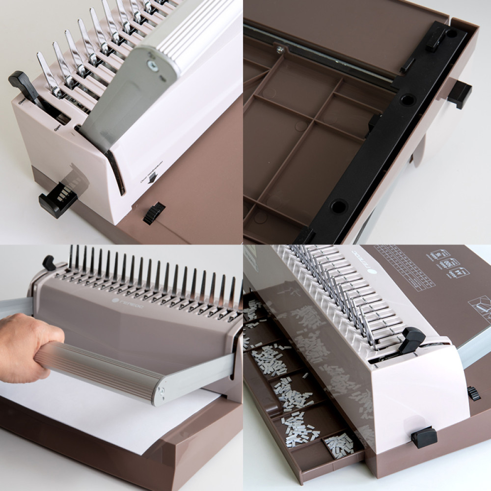 Качественный переплетчик на пластиковую пружину подходит для использования дома, а также в малом и среднем офисе. Позволяет переплетать большие бумажные блоки до 400-500 листов форматов А4 и меньше. Блок, оформленный на пластиковую пружину, можно легко раскрывать на любой градус, исправить и дополнить.