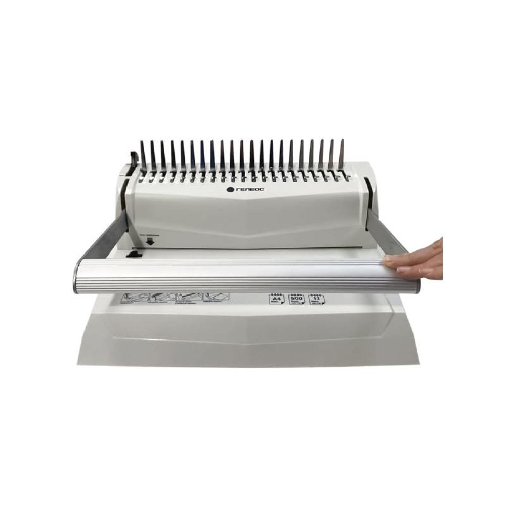 Регулировка глубины перфорации может переплетать как малые (до 100 листов), так и большие объемы бумажных блоков (до 400-500 листов). Также для удобства перфорации листов имеется ограничитель для бумаги формата А4 и А5.